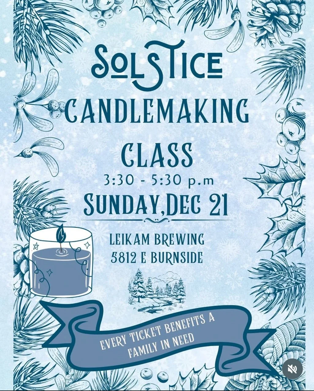 3:30-5:30PMOn the darkest night of the year, join us in bringing in the light! If you want an escape from holiday chores, or to do an activity with a friend, this is a low stress class where you’ll bring home a gorgeous candle. $45. Tickets available in the link below.